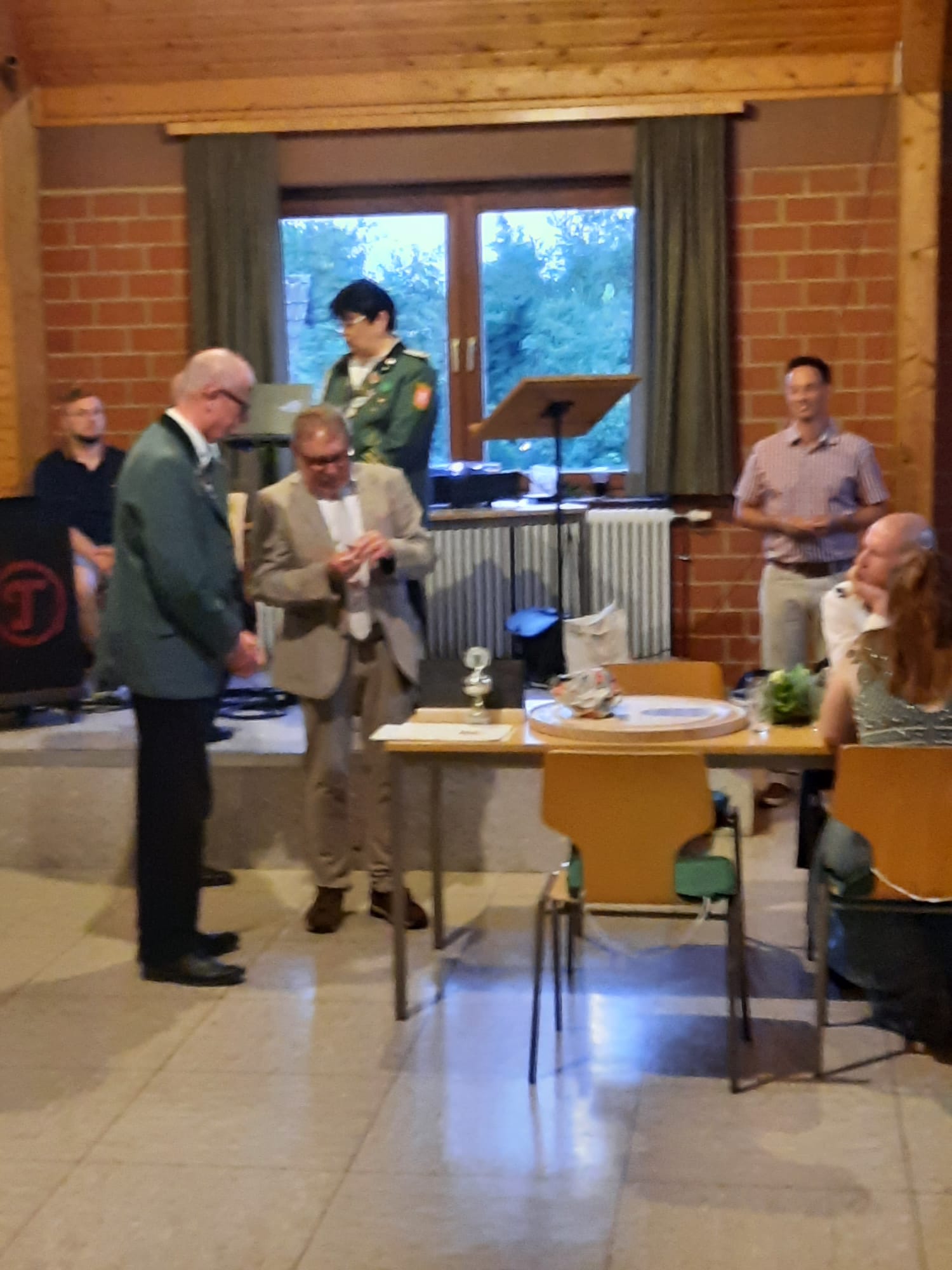 An einem schönen Jubiläumswochenende ging es schließlich am Samstag Abend mit einem Gang zum Ehrenmal mit Kranzniederlegung und kleinem Umzug mit Begleitung des Spielmannszug Eberschütz zum Dorfgemeinschaftshaus. Hier schloss sich ein Platzkonzert an bevor es in den Kommersabend ging. Dieser wurde von Zahlreichen Ehrungen begleitet. Eine ganz besondere Ehrung konnte das langjährig ehrenamtlich engagierte Mitglied Herbert Klaft entgegen nehmen. Ihm wurde der Ehrenbrief des Landes Hessen überreicht. Tagsüber ging noch die Bezirksversammlung voran.