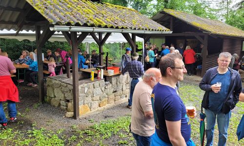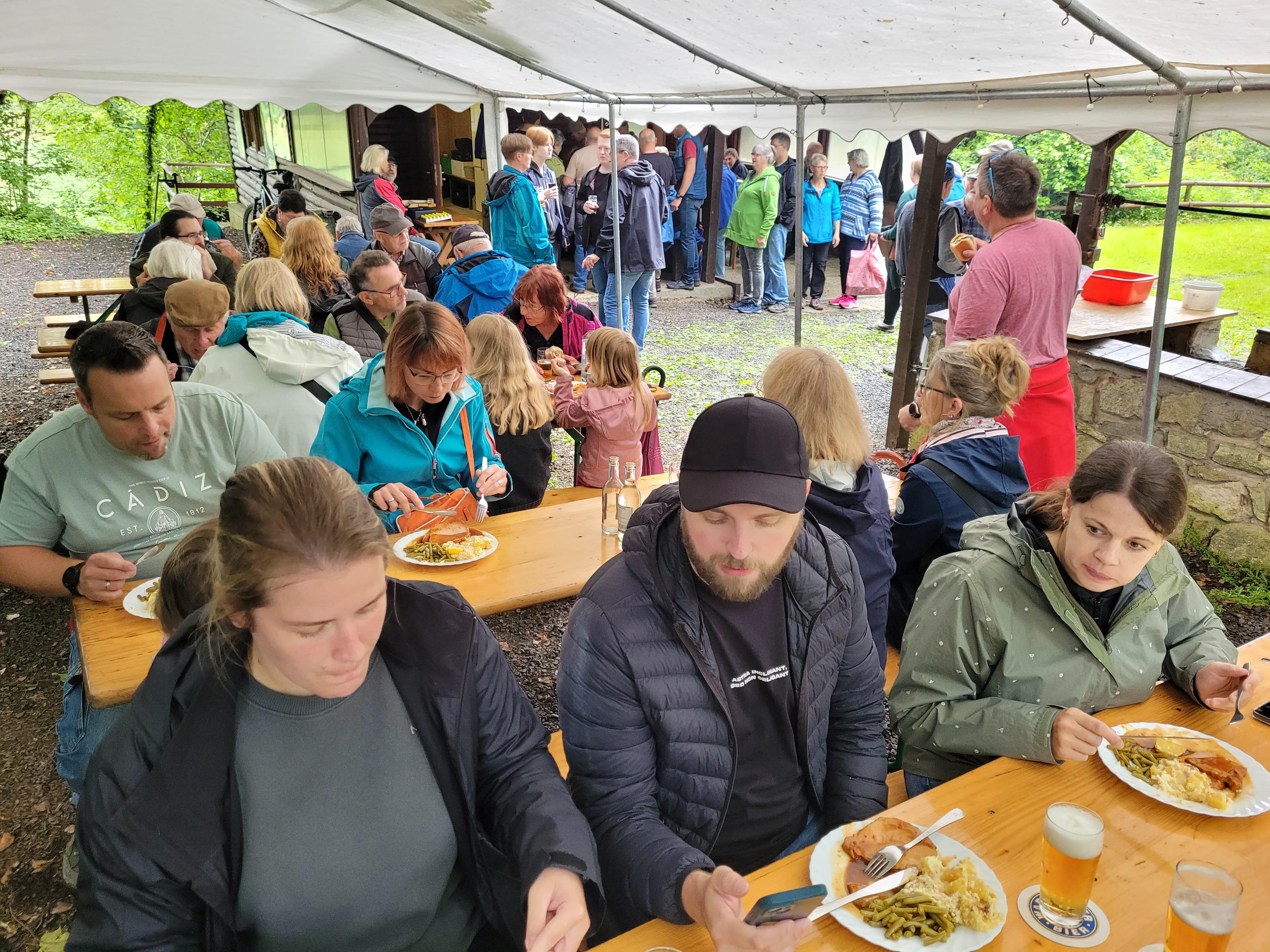 Nach dem Kaffee und Kuchen Buffet ließen die Mitgewanderten und Gäste den Tag bei gekühlten Getränken und guten Gesprächen bei nun auch trockenem Wetter ausklingen.
