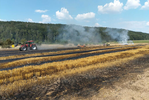 Alarmiert wurden wir am 27.07.2018 um 15:36 Uhr zu einem Brand einer landwirtschaftlichen Maschine auf einem Feld in Niedermeiser.